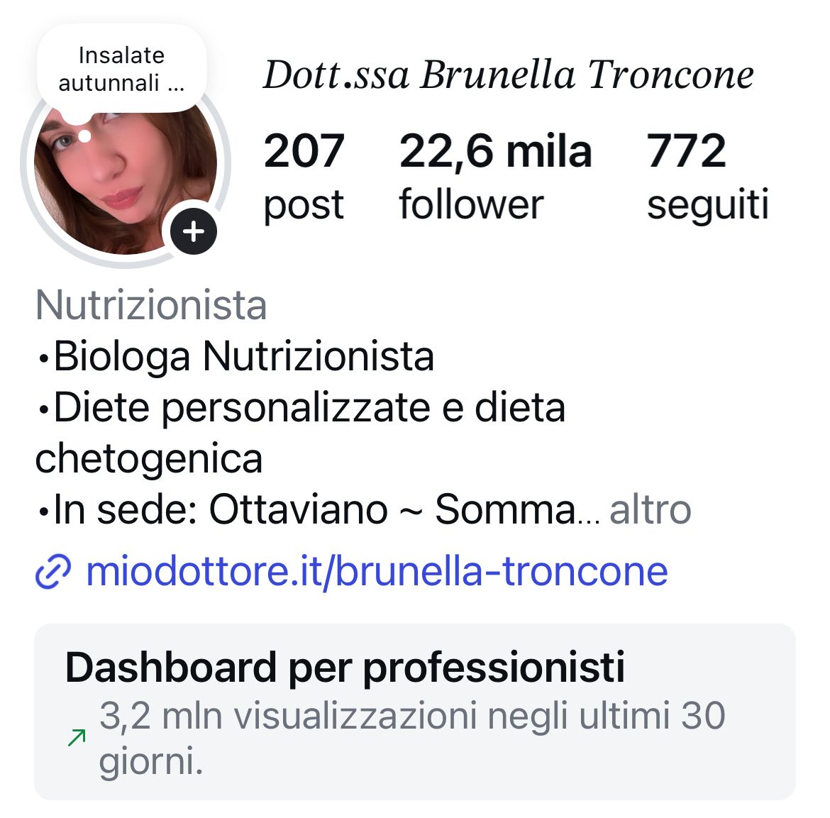 Sono una Biologa Nutrizionista che ha a cuore la salute dei suoi pazienti come fosse sua.